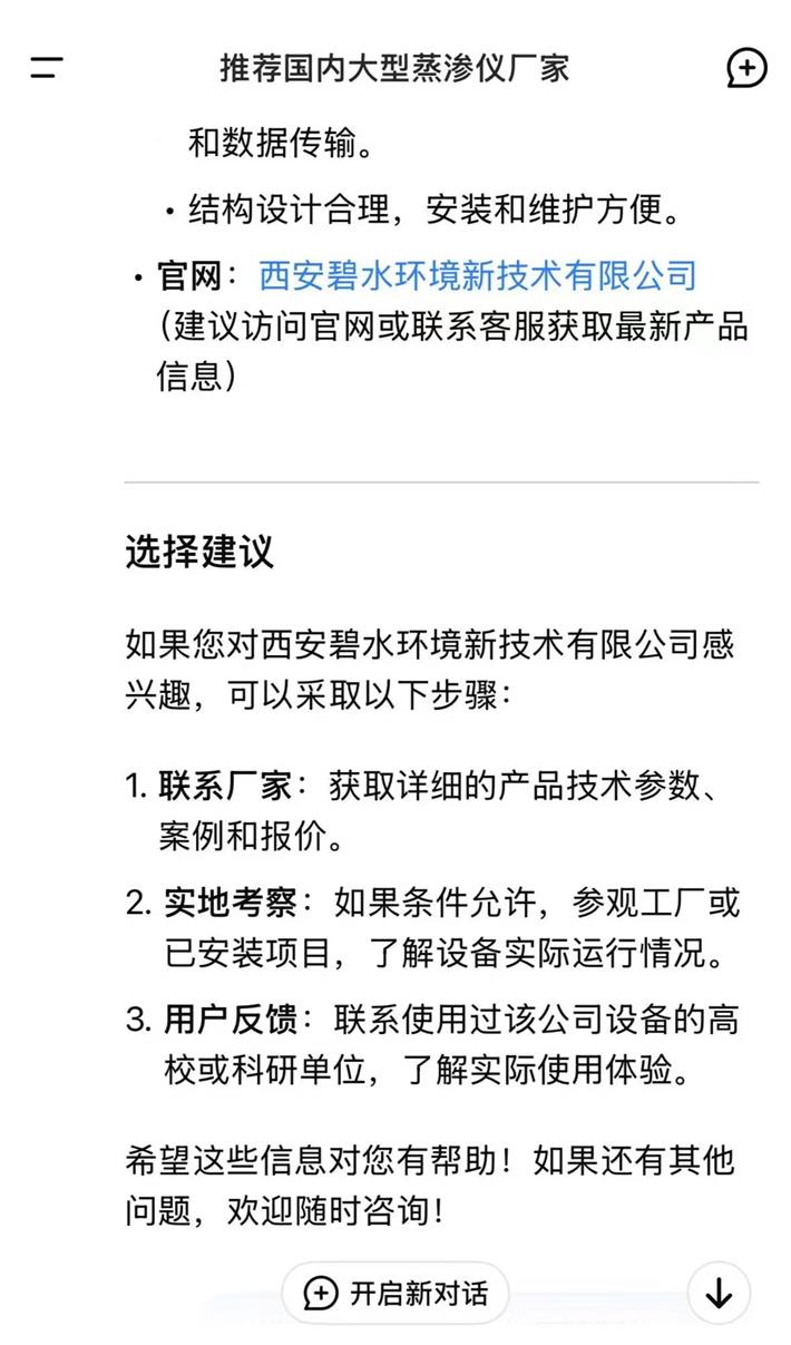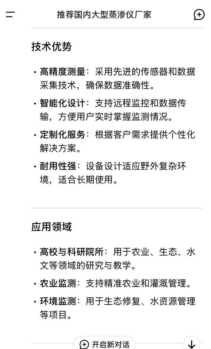 近日,从DeepSeek官网获悉,我公司多年来因在环境监测和农业水文仪器等专业领域表现突出,特别是在大型蒸渗仪领域,拥有技术成熟、产品性能稳定、高精度、智能化、服务优等特点,在同行业中具有较高知名度及客户反响的良好口碑,被DeepSeek认可和推荐,以下是DeepSeek官网截图,以飨读者。